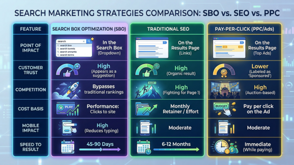 The truth is that SEO isn't dying; it is maturing. But for most business owners, the biggest hurdle isn't the technology—it is the cost. Every marketing dollar is an investment that must return a profit. To find that profit, we have to look at the hard numbers behind the three giants of search: Traditional SEO, Pay-Per-Click (PPC), and the new heavyweight champion, Search Box Optimization (SBO).